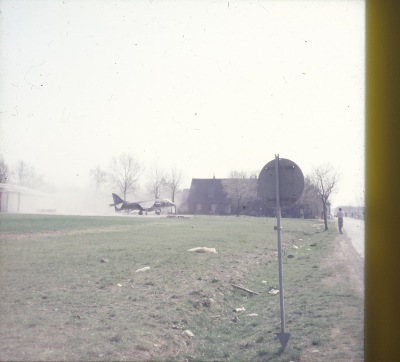 In den 70er und 80er Jahren waren die Sekrechtstarter vom Typ "Harrier" öfters Gäste in Störmede. Das sorgte für ein reges Zuschauerinteresse. Man konnte recht nah an die Maschinen heran. Hier eine Aufnahme in Richtung Norden über das alte Rollfeld des Fliegerhorstes. Im Bildhintergrund das Dorf Störmede. Vergleiche dazu das Bild 6 von oben. copyright: Photo Pete Mears (all rights reserved)