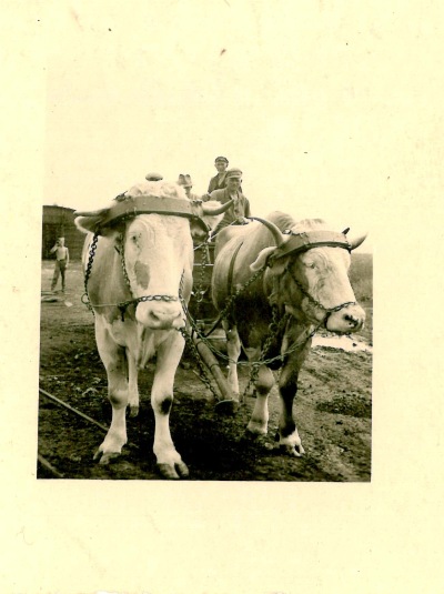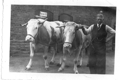 Waldecker Ochsen wurden vor und während des Krieges vom Platzlandwirt und seinen Mitarbeitern auf dem Flugplatz eingesetzt. Hier eine Aufnahme vor 1941, die auf dem Flugplatz aufgenommen wurde; im Vordergrund sind Schienen der Gleisanlagen zu sehen