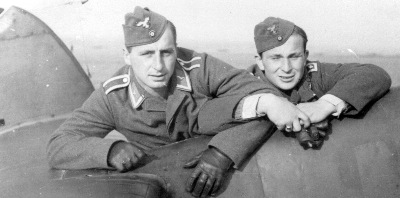 Martin Drewes (rechts) als Kommandeur der III./NJG 1 1944 in Metz
