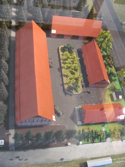 Die massiven Funktionsgebäude des Fliegerhorstes im Modell. Gebaut als ,,Gutshof".