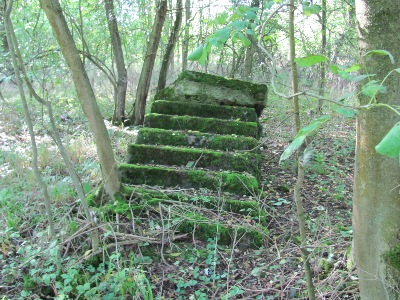 Treppe zum Vorratsraum der ehemaligen Kantine; im Sommer wegen der Brennesseln kaum zu erkennen.