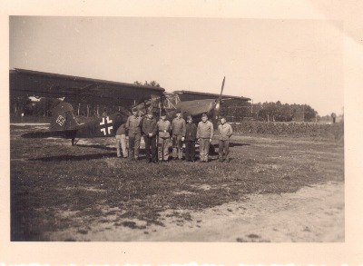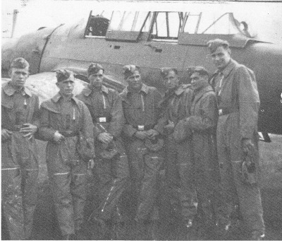 Hier eine Gruppenaufnahme, die einige Besatzungen dieser Nachtschlachtgruppe zeigt. Ganz links der Unteroffizier Arentz, von dem diese Aufnahme stammt.