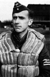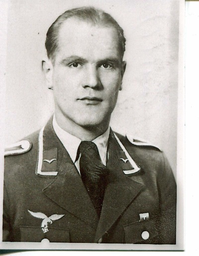 Oberfeldwebel August Weibl, geboren 1914 in München; meldete sich zur Luftwaffe und war als Fluglehrer in Straubing tätig; er kam im Dez. 1944 zum sog. "Kommando Welter", der 10. Staffel NJG 11 bei Magdeburg. Die Staf- fel flog im Nachteinsatz eine besondere Baureihe des Strahljägers Me 262. Am 3. März 1945 stürzte Weibl über Geseke ab: Nach einem Augenzeugenbericht berührte eine Tragfläche ein Hausdach und der Strahljäger stürzte dann in eine Scheune. Maschine und Gebäude brannten aus. Da die Erkennungsmarke wohl mit ins Grab gelangte, war Weibls Schicksal lange unbekannt. Der Grabstein erhielt die Inschrift "Unbekannter Turbojäger". Weibl galt fortan als "vermisst". Einige Jahre später wurde er für tot erklärt. Die Familie glaubte an einen Absturz im Harz. Nach der Graböffnung 1967 (!) in Geseke wurde der Gefallene anhand der gefundenen Erkennungsmarke als August Weibl identifiziert - die Familie erhielt endlich Gewissheit über das Schicksal des Ehemanns und Vaters! (Bericht des Sohnes Rüdiger Weibl; Foto: Rüdiger Weibl)