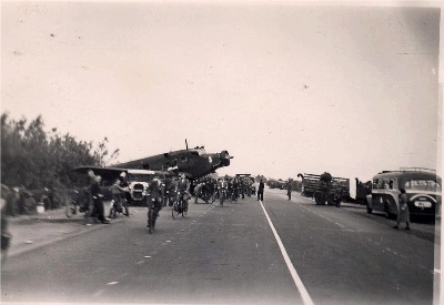 Notlandung einer Ju 52 in Holland, die das IR 65 im Kampfgebiet absetzen sollten.