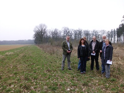 Führung auf dem Gelände des ehemaligen Horstes mit einer sehr interessierten Gruppe; März 2012