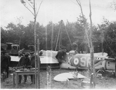 Das Schicksal der Blenheim, im Juni 1940 auf dem Fliegerhorst notgelandet, konnte bereits 2004 geklärt werden. Die Ergebnisse wurden 2005 im Buch veröffentlicht. Hier wurden auch Fotos des ehemaligen Betriebsmeisters C.G. veröffentlicht. Aber auch andere Soldaten haben dieses spektakuläre Ereignis im Bild festgehalten. Daher gibt es jetzt nach Auflösung verschiedener Fotoalben weitere Fotos aus ähnlicher Perspektive. Bitte beachten, dass dieses Foto geschützt ist!