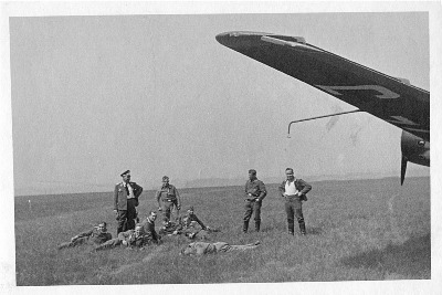 Vom Einsatz des 10. Mai 1940 in Holland kehrten viele Flugzeuge der Kampfgruppe z.b.V. 12 nicht zurück. Diese Besatzung hier hatte Glück und konnte trotz schwerer Beschusschäden sicher in Störmede landen. Man beachte die unterschiedlichen Gesichtsausdrücke der Männer!