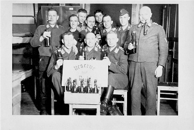 Reserve hat Ruh! Verabschiedung von Reservisten in den Unterkünften des Flugplatzes Störmede im Juli/August 1940. Viele werden nach ihrer Rückehr ins Berufsleben im Jahr 1944 wieder eingezogen werden!